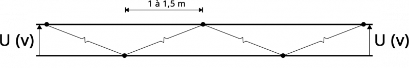 PCMT-Heizkabel bestehen aus Kontaktpunkten alle 60 cm: Die Erwärmung beginnt am ersten Kontaktpunkt. Der Anschluss erfolgt nur auf einer Seite des Heizkabels, nämlich an den +/- Anschlüssen des Stromkabels.